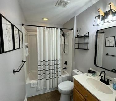 Serenity Cottage offers accommodations in Ocean Springs, a 9-minute walk from St. Andrews Beach and 11 miles from Vermont Street Park. Private parking is available on site at this recently renovated property. Inner Harbor Park is 11 miles away and Gulf Hills Golf Course is 13 miles from the vacation home. With free Wifi, this 3-bedroom vacation home provides a flat-screen TV, a washing machine, and a fully equipped kitchen with a dishwasher and oven. Towels and bed linen are featured in the vacation home. The property has an outdoor dining area. Guests can relax near the outdoor fireplace at the vacation home. Ocean Springs City Park is 11 miles from the vacation home, while Doll House is 11 miles away. Gulfport-Biloxi International Airport is 32 miles from the property.