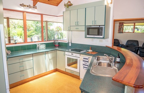 Three bedrooms and two bathrooms offer plenty of space for everyone to spread out and unwind. Whether you're enjoying the views of boats drifting with the tide or gazing at the native bush of Rangikapiti Reserve, Serenity Hills provides a peaceful backdrop to your holiday.