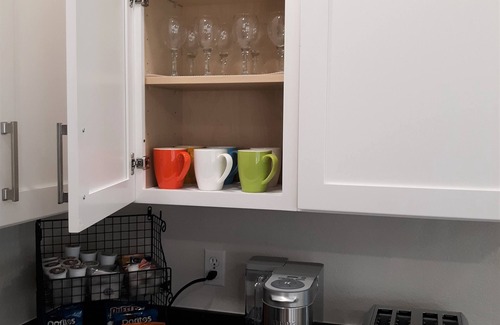 • Modern stocked kitchen: small appliances, pots, pans, cooking utensils, dishes, glasses etc.
