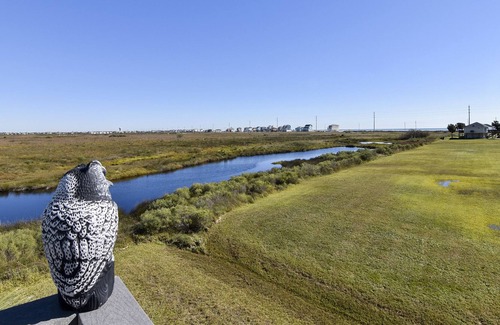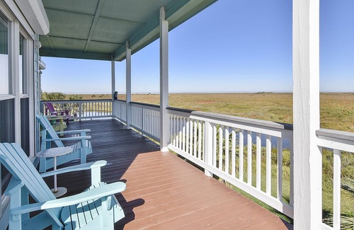Serenity is what guests will experience when visiting this quiet home in the Pointe San Luis Galveston Island. The bayside of Galveston offers sweeping, open views of the bay where guests will enjoy the many different birds that also call this area home. Guests may watch gorgeous sunsets from the multiple decks in this home, sit out and have a morning coffee and listen to the quiet of the west end of Galveston Island. If you and your family are looking for a peaceful, serene setting this is the home for you. This home has both Gulf and Bay views! The home offers a double-wide driveway and a large yard for playtime.