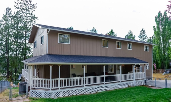 HUGE HOUSE on Reflection Lake in Elk, WA; 20 minutes north of Spokane. Only 55 minutes to Silverwood theme park (https://www.silverwoodthemepark.com/) and close to 49 degrees north, Mt. Spokane, and Schweitzer Mt. ski resorts. Serenity Lodge boasts 6 good sized bedrooms and 3 full bathrooms. Wrap around deck with propane BBQ, and view of lake. Cozy up to the Gas fireplace; enjoy the plush reclining sofas; make yourself a hot caramel macchiato at the coffee bar. Create your culinary masterpiece with our dual cooking surface: gas range and electric cook top. Gather around the huge solid wood dining table that seats 8. The kids will have a blast playing ping pong, foosball and corn hole, and at night the entire family can gather around the campfire and roast s'mores. Serenity Lodge is a great family destination that you can enjoy year after year and create memories that last a lifetime.