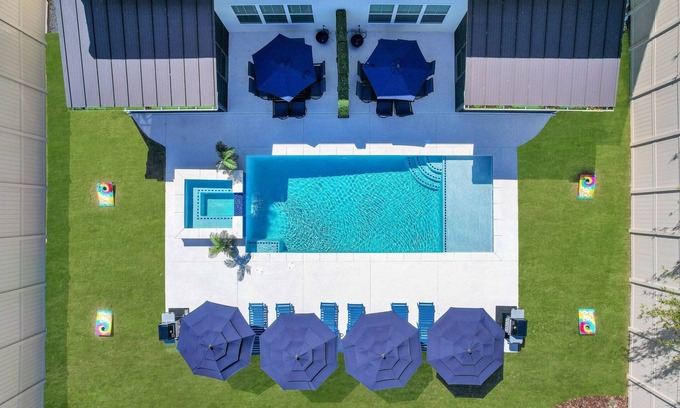 Outdoor Living at Its Best: Step outside to your private fenced yard, where you can unwind in the heated pool & spa ($45 / night), grill out on the patio, or enjoy a game of cornhole. Guests also have access to a private garage with a ping-pong table for added fun!