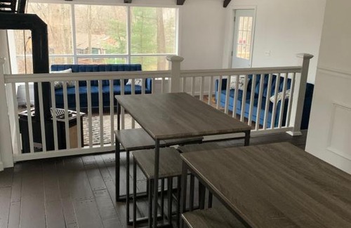 Offering garden views, Serenity on Saunders Drive in Sandyville offers accommodation, a seasonal outdoor swimming pool, a bar, a private beach area, ski-to-door access and a tennis court. Each unit has a patio, a fully equipped kitchen with a dishwasher, a fireplace, a seating area, a flat-screen TV, a washing machine, and a private bathroom with shower and a hairdryer. A microwave, a fridge and oven are also offered, as well as a kettle and a coffee machine. The holiday park offers a range of wellness facilities including an indoor pool and a hot tub. Guests at Serenity on Saunders Drive can enjoy table tennis on site, or go skiing or fishing in the surroundings. Delaware Water Gap National Recreation Area is 27 km from the accommodation, while Great Wolf Lodge Pocono Mountains is 44 km from the property. The nearest airport is Lehigh Valley International Airport, 86 km from Serenity on Saunders Drive.