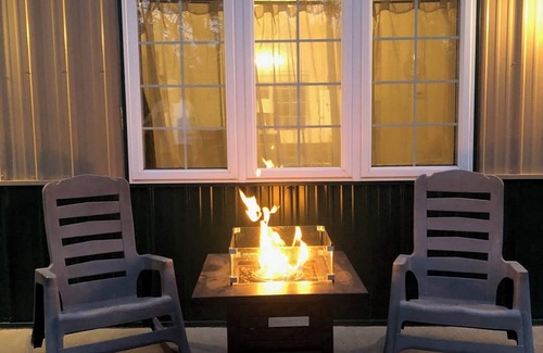 The full sized bathroom includes bath/shower as well as a towel warmer to help with that cozy feel on chilly nights! Towels and hairdryer also provided.