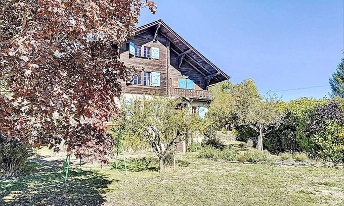 Chalet "Sergnoud", built in 1902. Below Crans, in the hamlet Lens, 5.7 km from the centre of Crans. Private: large garden. (swing). In the house: central heating system, washing machine, drying room. Parking (for 3 cars), single garage. Grocery 600 m, restaurant 500 m, bakery, café 700 m, bus stop "Lens Centre d'Art" 70 m. Skisport facilities 6.2 km. Nearby attractions: Fondation Opale 500 m. Well-known lakes can easily be reached: Louché 500 m. Please note: car recommended. The keys‘ handover takes place by the agency Montan'Agence in Montana, 7 km.
