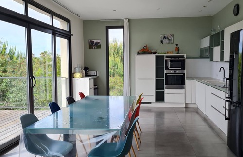 Located in the fishing port of SETE, the "Venice of Languedoc", the villa is located between the sea and the pond of Thau. Recently built, with an area of 180 m2, the luxury villa is fully air conditioned, facing south and decorated with large and many terraces. It has a large living room with large windows with panoramic views of the sea and Mont St Clair, 4 bedrooms including 2 large master bedroom, 3 bathrooms, 3 toilets and a garage for one car. It is furnished with brand name furniture, equipped with TV and Netflix, a stereo, internet connection, games, DVD. 2 canoes, 1 table tennis table, 4 bicycles, 1 indoor elliptical trainer, beach equipment and linen (sheets, duvets, towels) are provided. In the immediate vicinity of the villa, there is a sports course, children's games, beach volleyball and petanque courts, beach restaurants, a sailing school, a bus stop leading to the city center, a track cyclabe leading to Cap d'Agde and the pond of THAU. Séte is an ideal starting point to visit the hinterland.
