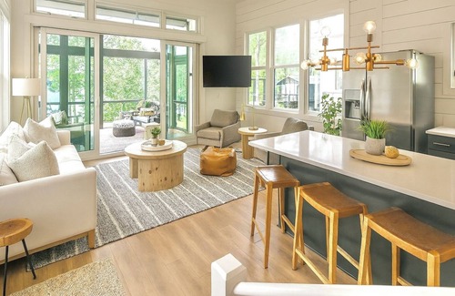 Inside, you’ll find a comfortable, welcoming retreat where every detail is designed for relaxation. Whether you’re curling up with a good book, sharing a family meal, or gazing out at the lake from the cozy living area, you’ll feel right at home.