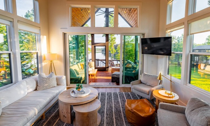 Step outside to the spacious deck—furnished with plush, cushioned seating—and let the gentle sounds of the lake be your backdrop. Sip your morning coffee as the sun dances on the water, or unwind in the evening with a glass of wine as the sky turns to gold.