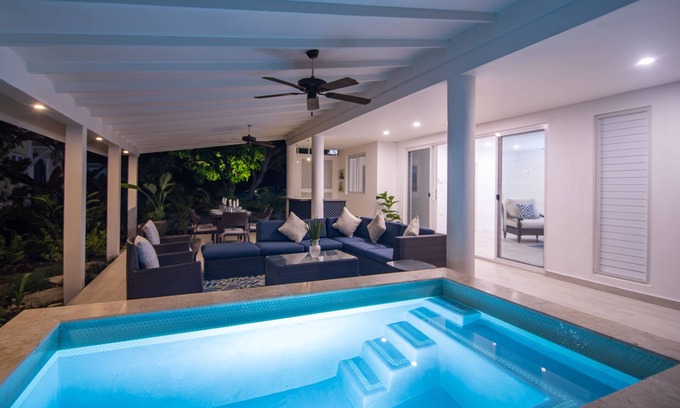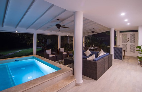 This private gem has a first, second and third bedroom all with full en-suite bathrooms on the upper level. The large open covered veranda leading into the cozy dining room which seats 6; the kitchen, pantry, outdoor bar, powder room and its very own private plunge pool - all located on the ground level.