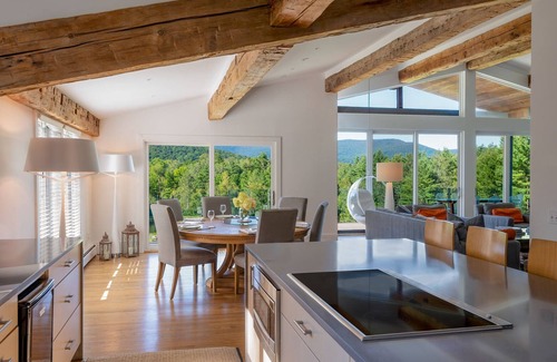 Seven Springs House is a luxurious five bedroom house nestled in the heart of Dorset. It is situated on 70 acres consisting of meadows, woodlands and two fresh water ponds. It offers unparalleled views of Vermont’s Green Mountains in a serene setting.