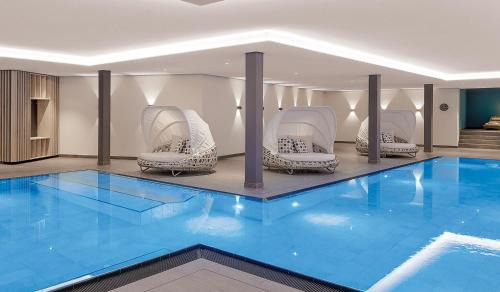 7.5 miles from Messe Friedrichshafen in Friedrichshafen, SEVINA APARTMENTS by traubeamsee provides accommodations with access to spa facilities, fitness center, and indoor pool. This condo hotel offers free private parking and luggage storage space. The accommodation features a sauna, free Wifi throughout the property, and family rooms. Each unit has a balcony, a fully equipped kitchen with a dishwasher, a dining area, and a seating area with a flat-screen TV, while the private bathroom includes a shower and a hair dryer. An oven, a toaster, and fridge are also offered, as well as a coffee machine. At the condo hotel, units have bed linen and towels. There is an on-site restaurant, coffee shop, and bar. Sightseeing tours are available in the area. A bicycle rental service is available at the condo hotel. Casino Bregenz is 29 miles from SEVINA APARTMENTS by traubeamsee, while Lindau Train Station is 22 miles from the property. Friedrichshafen Airport is 7.5 miles away.