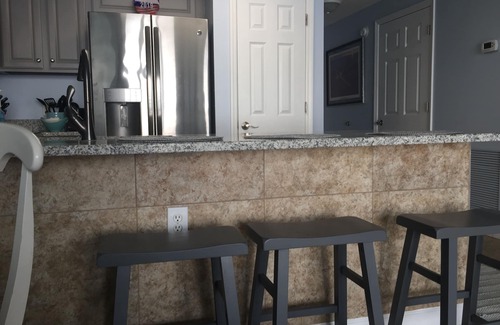 The unit is tastefully decorated with three flat screen HD TV's. One in each bedroom as well as the living room. Free Wi-Fi and high speed internet service (we are one of the very few Seychelles condos that have its own WiFi radio for excellent reception), black out drapes; you will have access to two pools, sauna, and fitness room. Our unit is one of the three or four condos in the complex that has a FULL SIZE front load HE Maytag washer and dryer, not the tiny stacked unit. The kitchen is fully equipped with new granite countertops; all you need to bring is the food. Make #seychelles405 your vacation home. Kitchen has brand new black stainless steel appliances.We also have a security camera mounted at the front door entrance to protect both the owner and the renter.