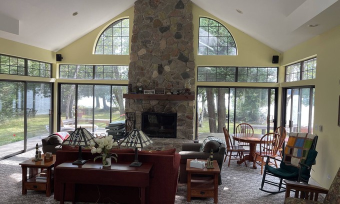 Large 4 bedroom home on beautiful Font Lake. Close to town yet completely private setting. Enjoy the dark sky and our singing loons.