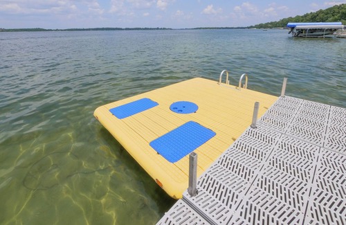 This location provides fantastic swimming (including a swimming platform shown in the pictures) and there is a dock system provided with a slip for each cabin (no lifts are provided).