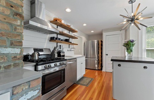 The lush and private backyard hosts a wide array of amenities: enjoy the outdoor gas firepit with Adirondack chairs, brand new Renson pergola with top-of-the-line furniture, grill, and patio table/umbrella which seats 8. There is an extra refrigerator and freezer in the garage, both of which you will have access to. There are also two bikes, a game of "bags" or "cornhole," depending on where you are from, and kayaks and a paddle board upon your request.