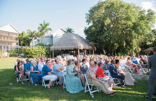 2. Shangri-La provides 3.5 acres of land, 3,000 sq. ft of outdoor covered space and 7,200 sq. ft of indoor AC space to decorate, design, and entertain large groups for your special occasion. The parking lot on the property can fit 30+ cars and a food truck! The adorable bridal suite overlooks the back yard and magical Manatee River sunsets.