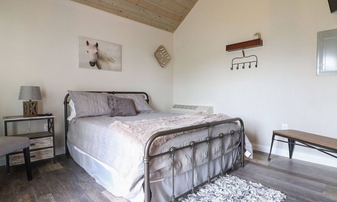 Galloping Goose Cottages located Dry Ridge, Kentucky. We offer 10 cottages 8 with Queen Beds and 2 with Twin beds. All are fully equipped with Air Conditioning and Heat, Cozy beds with Luxurious Linens, Full Bathroom, ROKU Flat Screen Tv's, Wi-Fi, Mini Refrigerator, Microwave, and Keurig. The cottages are 190 Square feet. Parking on premises is available. They're located only minutes away from The Ark in Williamstown, KY! The Cottages are located next to a train track.