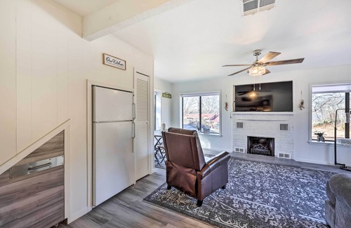 Find total relaxation on the edge of the Neosho River in Grove! This cozy vacation rental is the ideal place for a chill weekend getaway for couples or friends. If you’re traveling with family, there are additional rentals on-site for everyone in your group. In the summer months, lounge and play by the shared pool or head down to the water to fish. Enjoy a family day out exploring the Lendonwood Gardens or learn something new at the Bernice Nature Center!