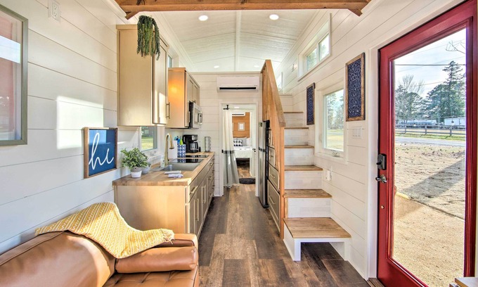 You don’t need a big house to have a great time! This charming tiny home in Daingerfield is the perfect place for you and your favorite travel buddy to relax by the lake.