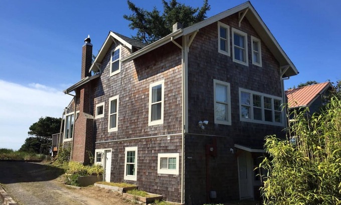 Beach, hot tub and retro arcade… need we say more? Our home is a large Oceanfront home originally built in 1925 that sits on a 1/2 acre oceanfront parcel directly in front of the Twin Rocks. We have a large yard and path which connects the house directly to the beach. There are great views of the Twin Rocks from house and the deck, or get closer and hang out on picnic table overlooking the beach. We have a hot tub off the deck and a retro arcade in the basement, with Skeeball, pop-a-shot and retro arcade games.