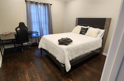 This stylish place to stay is perfect for group trips or Simply a great Gateway from home! Property is located in a well established area in SHARYLAND, 2 living rooms, Theater Room with SAMSUNG 85 in TV WOW!! Pull out sofa, Samsung surround sound, Living room 75in Smart Tv. Master Bedroom with King Bed,75in Smart tv, Master bathroom with Rainfall shower head,LED BLUETOOTH SPEAKER, Jacuzzi tub, Master Closet,2 additional queen bedrooms 1 King bed, bathroom upstairs with Rainfall shower much more.
