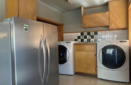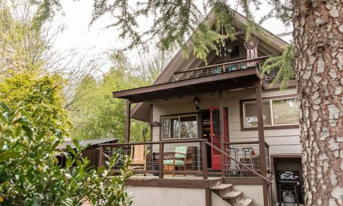 The house is decorated with a flare of vintage and modern home furnishings to incorporate new and old. The home has a upstairs balcony and a downstairs porch to enjoy during the summer months. Complete bathrooms on both levels. Upstairs is a large area with a king bed and a twin trundle bed. Downstairs has two bedrooms, one with a queen bed and office and the other room has two twin beds. There is a queen sleeper in the living room as well. The home sleeps 10 in total. Kitchen has a dishwasher and is fully stocked with kitchen supplies. It does have a washer/dryer for you to use. The front yard gives you views of Mount Shasta to enjoy with a morning cup of coffee or tea.