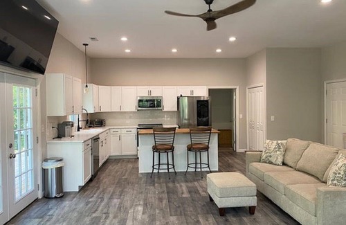 Gorgeous and secluded, sleek and modern shome with back patio, grill, and trail to expansive and quiet waterfront with dock.