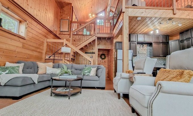 Three room cabin with a full bed, sofa sleeper, twin loft, and full bath. Private deck and coffee bar. Sleeps up to 5.