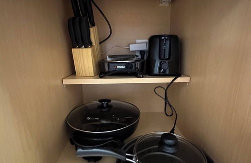 Beautiful location on a working family farm. This cozy one bedroom studio is equipped with a comfortable queen bed, luxurious pillows and bedding. Twin rollaway is available if needed for children or additional guest. Night stand charging stations and lights, dinner table is large enough for 4 guest or to work remotely. Independent unlimited stable internet provided. Kitchen is stocked with a microwave, mini fridge/freezer, hot plate, electric skillet, pots/pans, crockpot and toaster. Also has a keurig coffee pot, variety of coffee pods, creamers and teas. These is also a 5 burner grill w side burner for outdoor cooking.
