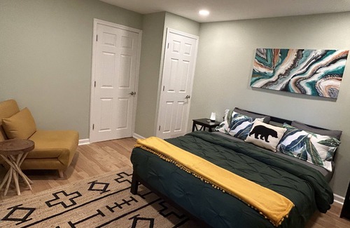 Your guest suite is on the ground floor, recently finished, with its private entrance (separated from main floor), with all amenities you'll need. You'll have the deck upstairs and the outdoor spaces (hammock, swings, fire pit, charcoal grill, etc) all to yourself!