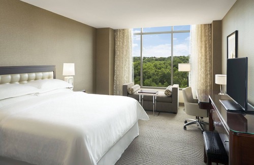Sheraton Austin Georgetown Hotel & Conference Center offers 222 accommodations with laptop-compatible safes and coffee/tea makers. Pillowtop beds feature down comforters and premium bedding. 43-inch LED televisions come with premium satellite channels. Bathrooms include showers, designer toiletries, complimentary toiletries, and hair dryers.