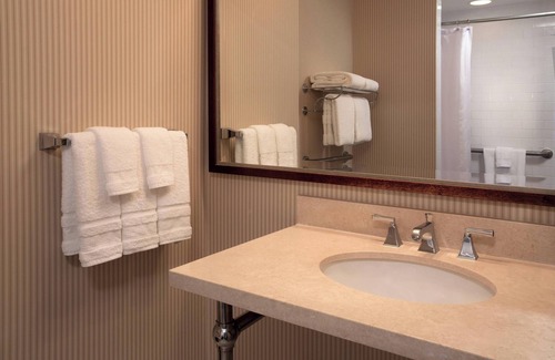 Sheraton Louisville Riverside by Marriott offers 180 accommodations with safes and complimentary bottled water. Beds feature down comforters and premium bedding. LCD televisions come with premium satellite channels and pay movies. Bathrooms include designer toiletries, complimentary toiletries, and hair dryers.