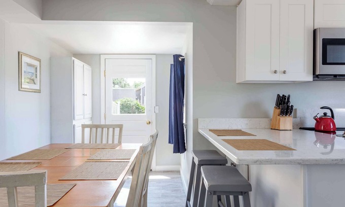 You will be close to everything when you stay at this cottage right downtown in Old Harbor on Dodge St with direct beach access. Now rented by Herdman Hospitality, this 3-bedroom (king, 2 queens, pull-out), 2 full bathroom cottage, fully equipped with modern amenities like a full kitchen, washer/dryer, Roku TV, Wi-Fi, A/C, and an outdoor shower, linens and beach basics. Offers direct beach access and in town, 3-5 mins from the ferry. Accommodates up to 8. Free Parking. Pet friendly.