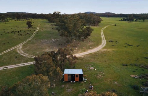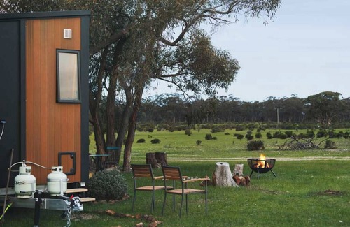 Sheryl’s Place by Tiny Away sits in Fosterville, just 20 minutes from Bendigo, where wide paddocks meet treed ridges and the Wellsford Forest wraps it all in green. The tiny house sits 50 metres from the main home, giving you your own patch of land, sky, and silence.