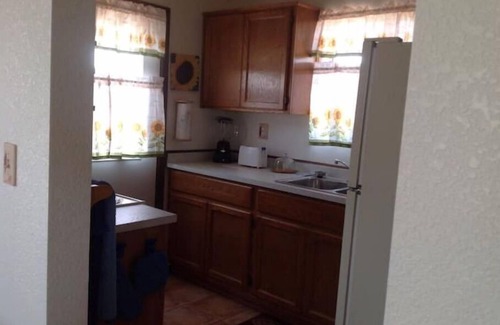 The cozy Guest House is relatively self contained.....but you can explore or wander the rest of the 40 acres. High speed Internet, Starlink, wifi, and ROKU TV with some DVDs & VHS are included ......washer & dryer in the Ranch House can be arranged to use. The kitchen is well equiped, you'll find a Bar-b-Que to use on your porch and a fire pit for campfire songs, and toasting marshmallows! Please bring firewood. There's a deep well, with delicious, pure, refreshing, cold on-site water. Enjoy the telescope for night viewing.The sunrises, sunsets, and brilliant pollution-free blue skies invite you to see at least 30 miles with clarity.