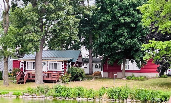 Welcome to this charming resort in Shipshewana. This awesome property features not one, but 2 spaces for you to enjoy! The CABIN offers a bedroom with two king beds that can also be converted to twin beds, a queen sleeper sofa, and a twin sleeper sofa. A full kitchen, living room and bathroom are also included. There is a deck on the Lakeside with seating available, as well as a front patio with a set of rockers. In addition, the CARRIAGE HOUSE right next-door adds additional sleeping, up to six with a king bed overlooking the lake and two sets of bunk beds. The carriage house has an additional bathroom, mini fridge, coffee bar and table and chairs to either use for dining or playing games. You're sure to make fantastic memories with a stay at our place.