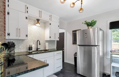 Experience a delightful stay at The Shocker Shack, a cozy cottage near Wichita State. This home offers stylish black and gold decor, two king-bed bedrooms with Smart TVs, and a private backyard with a gas grill. Located in a welcoming, multicultural neighborhood, it's the perfect spot for a comfortable and convenient getaway.