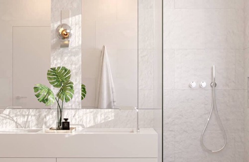 Designed to celebrate the country’s traditional wooden chattel houses, this beachfront home boasts an elegant composition featuring bold architectural layering with large living areas, surrounding louvre windows and oversized glass doors. These allow guests to enjoy extensive views of the garden and the stunning beach that is undoubtedly one of Barbados’ best. With sleek granite finishes juxtaposed next to glass, the home presents a modern and minimalist composition, and the straight lines and shape of the front entrance hover over a serene koi pond, exuding a sense of sophistication and tranquility.