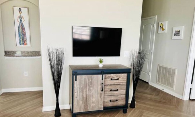 ShopTilUDrop ~ Stylish 2 Bedroom w/Vaulted Ceilings & Large Rooms is located in Pearland. ShopTilUDrop ~ Stylish 2 Bedroom w/Vaulted Ceilings & Large Rooms provides accommodation, featuring Pet Friendly, Pool, Child Friendly, among other amenities. This Apartment features Pet Friendly, Pool, Child Friendly, to make your stay a comfortable one.