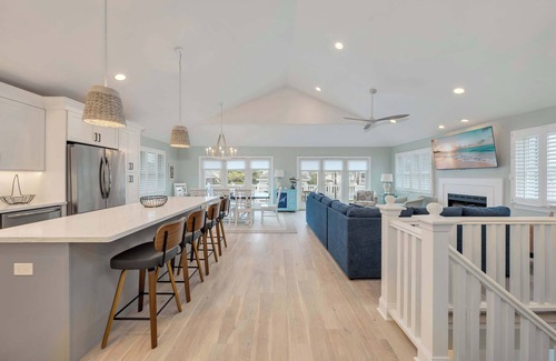 Relax and unwind by the private heated pool, fire up the gas grill for an evening BBQ, or enjoy your morning coffee on one of the multiple spacious decks with ocean breezes. Inside, you'll find a thoughtfully designed open floor plan across two stories, including two family rooms, perfect for families or groups. The gourmet kitchen is well-equipped and features high-end appliances, with an extra full-sized refrigerator—ideal for extended stays or entertaining.