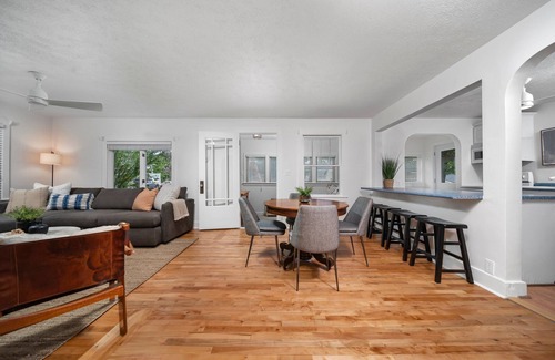 Are you looking for an extra special beachside stay? Our Shoreline Suite is the unit you will want to be in! Known previously as the managers unit, this space historically was reserved for only the property owner but has been updated and renovated to be a shining star on the beach! With a spacious layout, the Shoreline Suite sleeps four guests with our two double bedrooms, one bathroom, and open living room. Featuring a kitchen with a counter-top bar, making dinner while visiting with friends and family is easy with our open floor plan. If you are looking for the perfect nook to read or squeeze some work in before hitting the beach, our suite has the cutest closed in porch to give you privacy. Beautiful wooden floors with chic rugs create a warm and inviting space, perfect for relaxing, entertaining, or a mix of both! Our Shoreline Suite is ready and waiting to provide you the best of both worlds: a beach escape with a luxurious living space.
