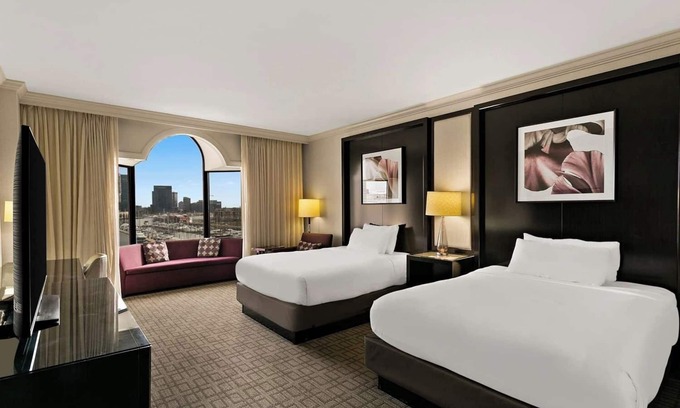 If you are looking for a waterfront stay in the heart of Baltimore, this hotel is the perfect choice for you. You will be minutes away from top attractions like the National Aquarium, the Maryland Science Center, and Oriole Park at Camden Yards. You can also enjoy the famous crab cakes on the waterfront or shop at Harbor Place. You will love the spacious, elegant rooms with a flat-screen TV and plush bed. You will also have access to a range of amenities, such as an indoor pool, a fitness center, and a lobby café that serves breakfast and lunch items to go. On Wednesday - Saturday evenings, you can dine at Explorers, an American Gastropub that offers appetizers and cocktails. This hotel is an award-winning property that has received the AAA Four Diamond Award and TripAdvisor's 2021 Certificate of Excellence. You will be impressed by this hotel's refinement, charm, and laid-back style. Experience the best of Baltimore from this luxurious waterfront hotel.