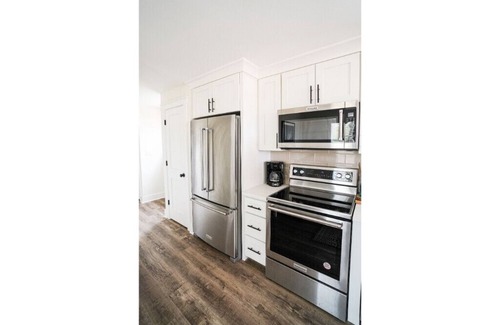 PET FRIENDLY! This charming two bedroom, one bath cottage offers a warm and inviting atmosphere with lots of natural light and a well-designed floor plan. As you enter the cottage, you'll be greeted by a cozy living room that features comfortable seating and a flat-screen TV, perfect for relaxing after a long day. The kitchen is fully equipped with modern stainless steel appliances and offers plenty of cabinet space. The bedrooms are spacious and bright, providing comfortable sleeping quarters for up to six people. The bathroom has been tastefully designed with modern fixtures and finishes, and features a walk-in shower. There is a washer and dryer in the cottage for your use. In addition, the home includes a cozy front porch area, perfect for enjoying a morning coffee or evening adult beverage. Situated in a desirable location, just 13 miles south to the beautiful white-sand beaches of South Walton, this cottage is conveniently located near shopping, dining and entertainment options. Use of Riverwalk Landing clubhouse, pool and all amenities included. With its thoughtful amenities and prime location, this cottage offers a truly exceptional vacation experience. PET FEE = $125; maximum of two pets