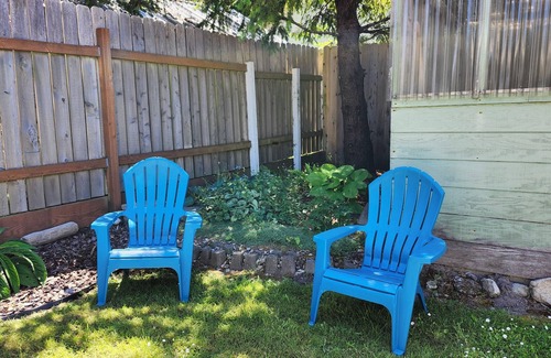 The large fenced back yard, is perfect for lawn games, gathering and relaxing in the sun or shade. Gas BBQ area and seasonal outdoor seating space for family meals.