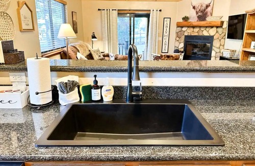 Two bedroom and 2 full baths. Fully equipped kitchen. Relaxing front porch and covered backyard deck. Cozy gas fireplace, 2 smart TV's (one in great room and one in master bedroom) with popular apps. Sleeps 5. Fenced in backyard for children and pets.