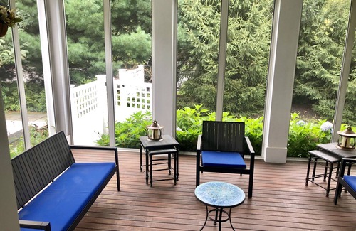 Stately Georgian Colonial with 7,000 sq. ft of living space on three levels - six bedrooms, 4.5 bathrooms, 3 season porch, billiards room with bunk beds, outdoor entertaining space with outdoor kitchen, fireplace, pizza oven and hot tub. Walk to downtown Newburyport with its amazing restaurants and coffee shops, bike to Plum Island. Minutes from other area beaches including Crane’s Beach, Salisbury, and Hampton. Sleeping areas include: (1) Large master suite with king-sized bed, sitting area, balcony overlooking beautifully landscaped back yard; en suite bathroom; (2) second bedroom with king-sized bed; (3) third bedroom with queen sized bed and pull out full sized sofa; (4) fourth bedroom with queen sized bed and sitting area; (5) home office/bedroom with queen sized fold out bed; and (6) sunroom/bedroom with queen sized bed; (7) pool room with bunk beds to sleep four. Large chef's kitchen with eat-in sunken dining nook. Other rooms include: family room with large-screen tv and fireplace, parlor with fireplace, dining room with fire place, and billiards room. Finished basement with ping pong table and foosball table.