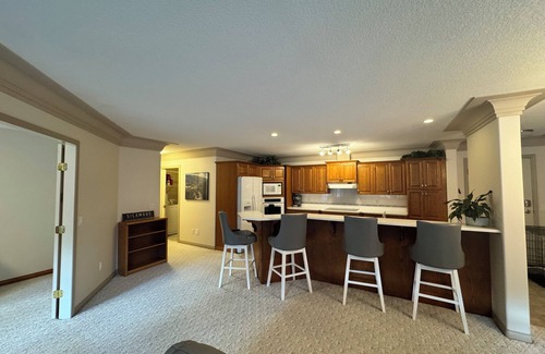 Welcome to our spacious Sicamous condo, it has a master bedroom with queen bed and bunk beds, this room shares a balcony with the office / Murphy bed room, the bathroom is just outside the door with the laundry across the hallway. The king bedroom is very spacious with its own lockout and bathroom. The kitchen is large with induction stove and amazing views. The living room is large with 2 leather couches and 2 comfy chairs. The BBQ is off of the living room on the balcony. There is a seasonal hot tub and pool, wifi is included. Our condo is within walking distance to every amenity that you could need including the public beach which has life jackets to use if you have forgotten one. We have seen the Aurora many times from our condo if you are there when it is happening get ready for the most beautiful sky you have ever seen.