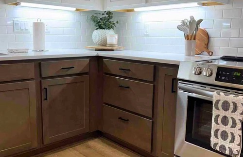 Each home features open living spaces filled with natural light, plush seating, and modern décor. Stream your favorite shows on the Smart TVs, enjoy friendly competition with a shuffleboard table, or step out to one of six private patios for morning coffee or evening sunsets over the lake. With two living rooms and plenty of lounge space, there’s always a cozy spot to unwind.
