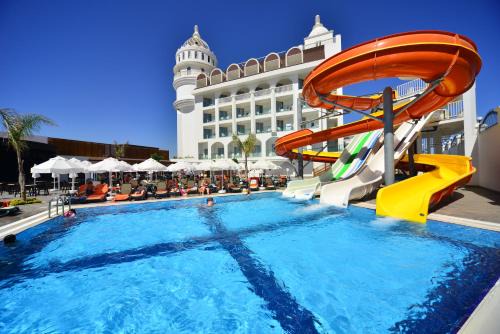 Located in Side, a 12-minute walk from Colakli Public Beach, Side Crown Serenity Ultra All Inclusive provides accommodations with a seasonal outdoor swimming pool, free private parking, a fitness center and a garden. Among the various facilities of this property are a private beach area, a terrace and a bar. The hotel has an indoor pool, sauna, nightclub and a kids' club. Guest rooms at the hotel come with air conditioning, a seating area, a flat-screen TV with satellite channels, a safety deposit box and a private bathroom with a shower, free toiletries and a hairdryer. Each room has an electric tea pot, while selected rooms come with a balcony and others also offer city views. All guest rooms include a closet. Breakfast is available, and includes continental, vegetarian and vegan options. At Side Crown Serenity Ultra All Inclusive you'll find a restaurant serving Chinese, French and Italian cuisine. Vegetarian, dairy-free and halal options can also be requested. The accommodation offers a hammam. You can play pool, table tennis and darts at this 5-star hotel, and car rental is available. Languages spoken at the reception include German, English, Russian and Turkish. Aspendos Amphitheatre is 14 miles from Side Crown Serenity Ultra All Inclusive, while Green Canyon is 21 miles from the property. Antalya Airport is 36 miles away, and the property offers a paid airport shuttle service.