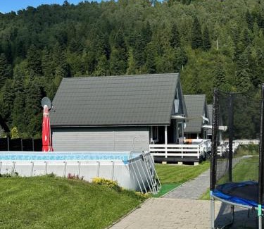 Providing a garden, Siedlisko Leśnica - domki całoroczne Brenna provides accommodations in Brenna. Guests are welcome to go for a swim in the pool with a view. There's an outdoor fireplace and guests can use free Wifi and free private parking. Featuring a terrace and mountain views, the spacious chalet includes 2 bedrooms, a living room, satellite flat-screen TV, an equipped kitchenette, and 1 bathroom with a shower. Towels and bed linen are available in the chalet. The property has an outdoor dining area. For those times when you'd rather not eat out, you can cook on the barbecue. For guests with children, the chalet features a children's playground. A water park is available on-site and skiing can be enjoyed close to Siedlisko Leśnica - domki całoroczne Brenna. TwinPigs is 28 miles from the accommodation.